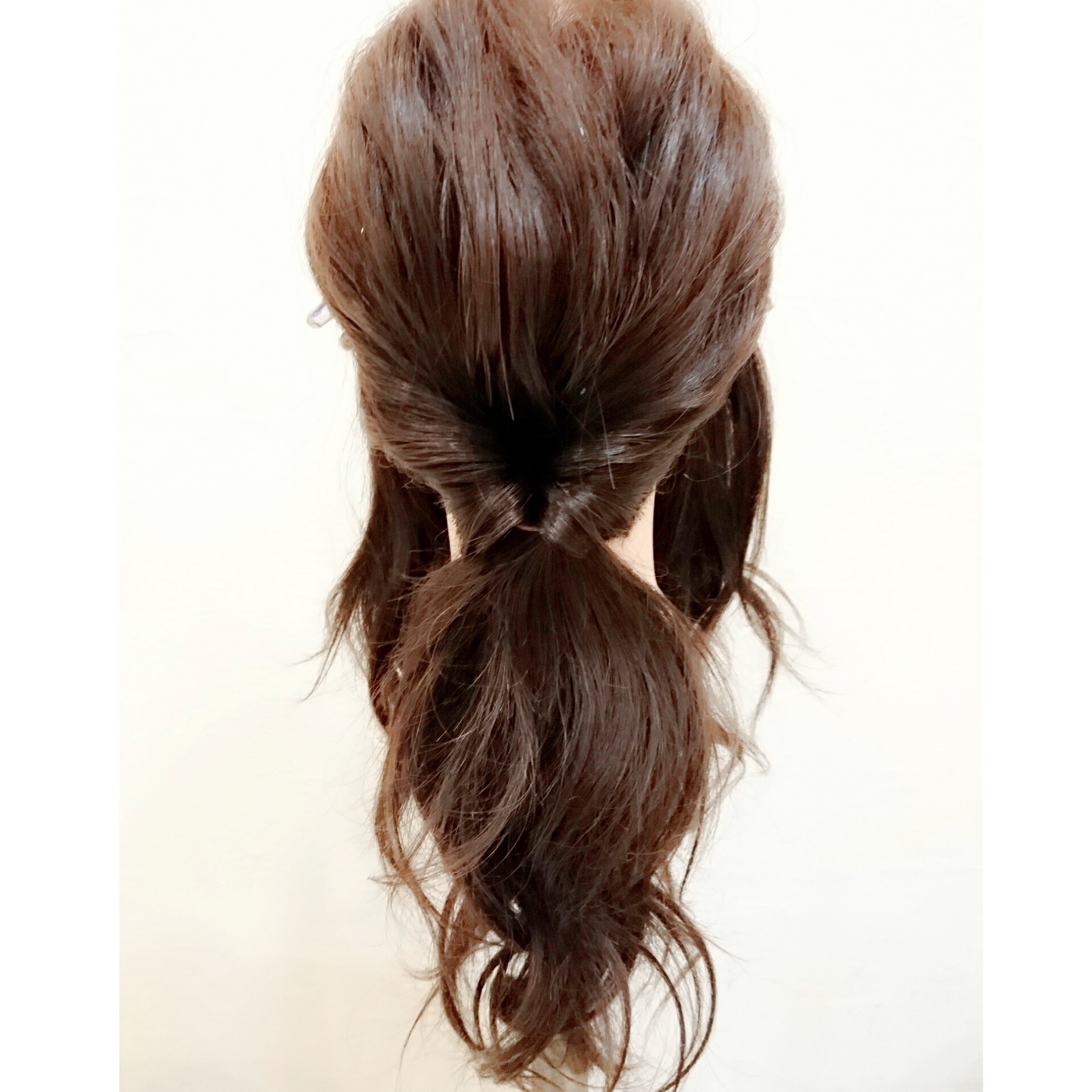 下の位置でまとめるとガーリーで上品な仕上がりになりますよ。